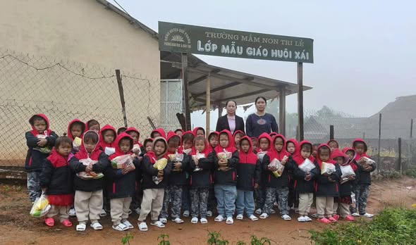 Mỗi phần quà đã bao gồm phí vận chuyển tới các điểm trường trị giá 150.000VND bao gồm: 1 chiếc áo ấm dày 3 lớp, 1 chiếc quần ấm, 1 đôi dép, 1 phần bánh kẹo.